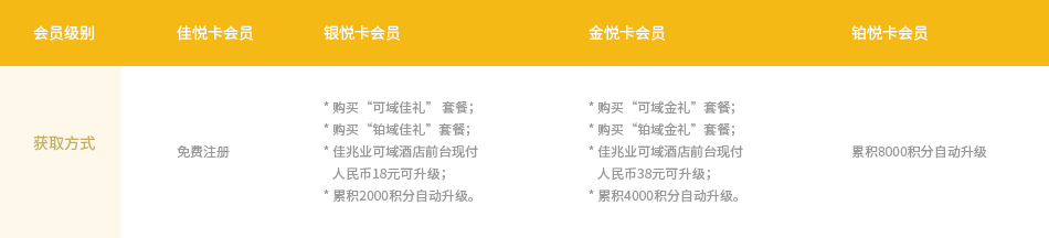會員升級至“金悅卡”,可享有“金悅卡”全部會員權(quán)益。